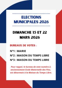 ℹ️ Le bureau de vote n°2, anciennement situé à l’École maternelle des Pins, est désormais installé à la Maison du Temps Libre.
