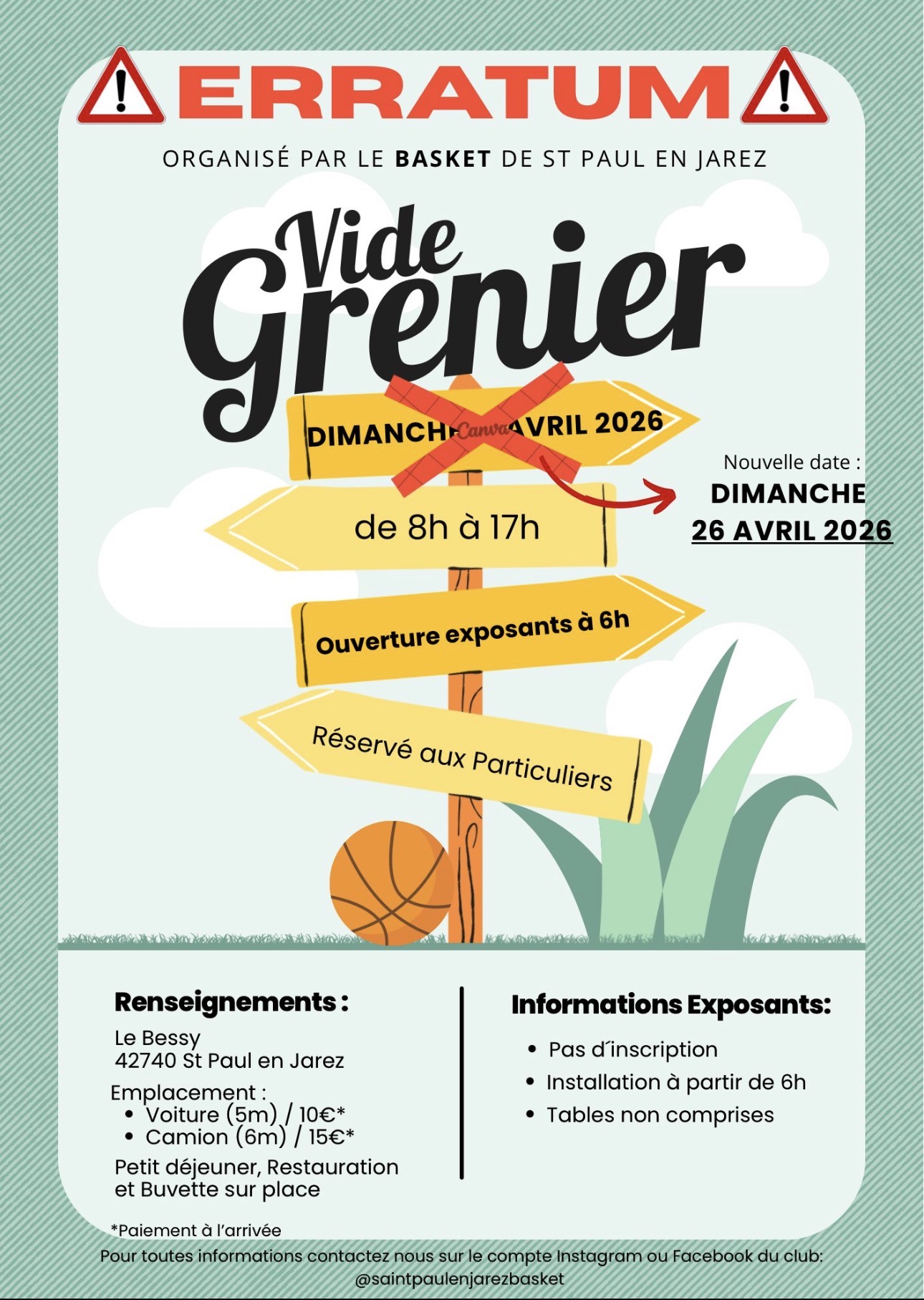 Screenshot VIDE GRENIER + Ajouter à mon Agenda Google + Exporter vers iCal Date 26 Avr 2026 Partagez cet événement