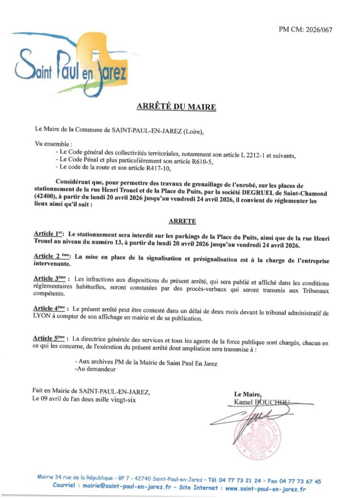 🚧 Neutralisation de stationnement – Rue Henri Tronel & Place du Puits